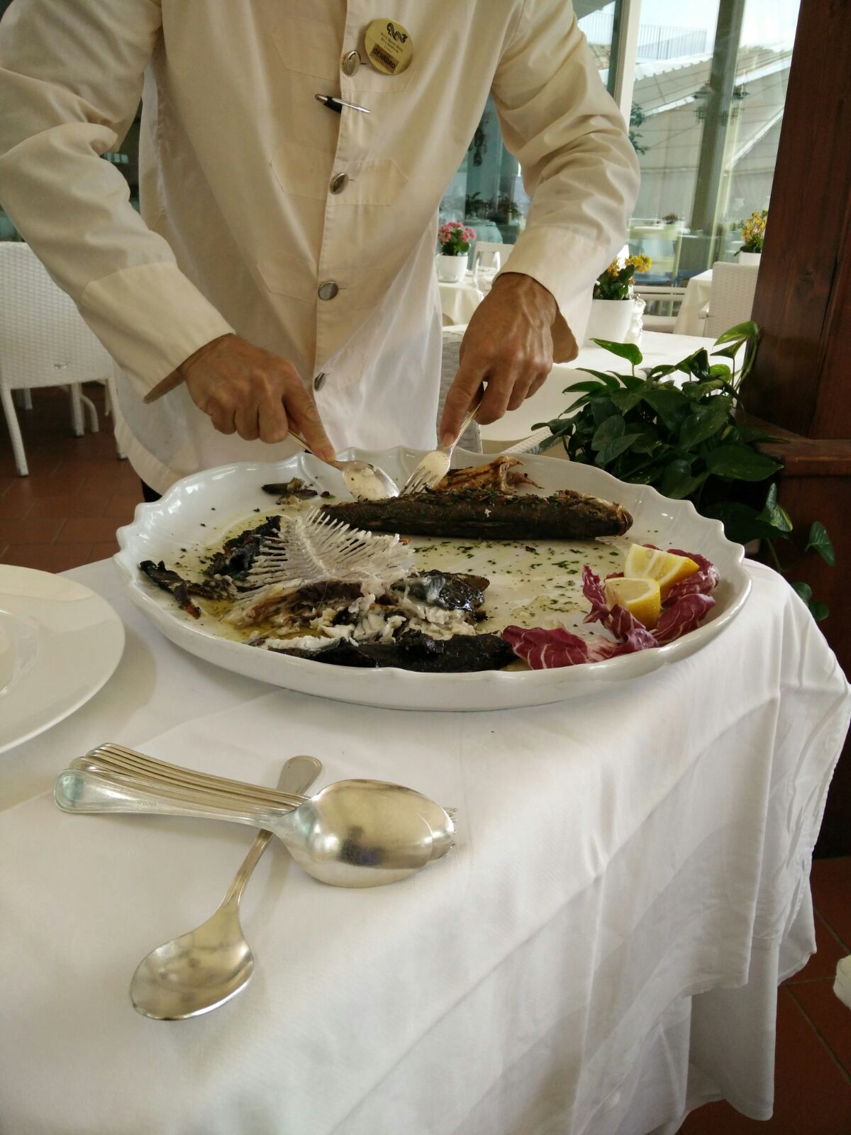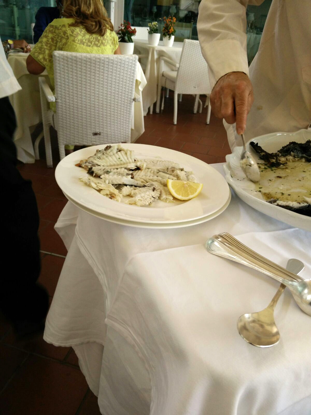 The food was amazing, I got the Branzino (Mediterranean Sea Bass), it was the full fish and they debone it right in front of you. My mother had another fish that was very good and was presented in the same manner as mine. My husband had the fish and my father had the salad bar and soup. Everything was wonderful and fresh. The fish tasted as if it was just caught right out of the sea and cooked.