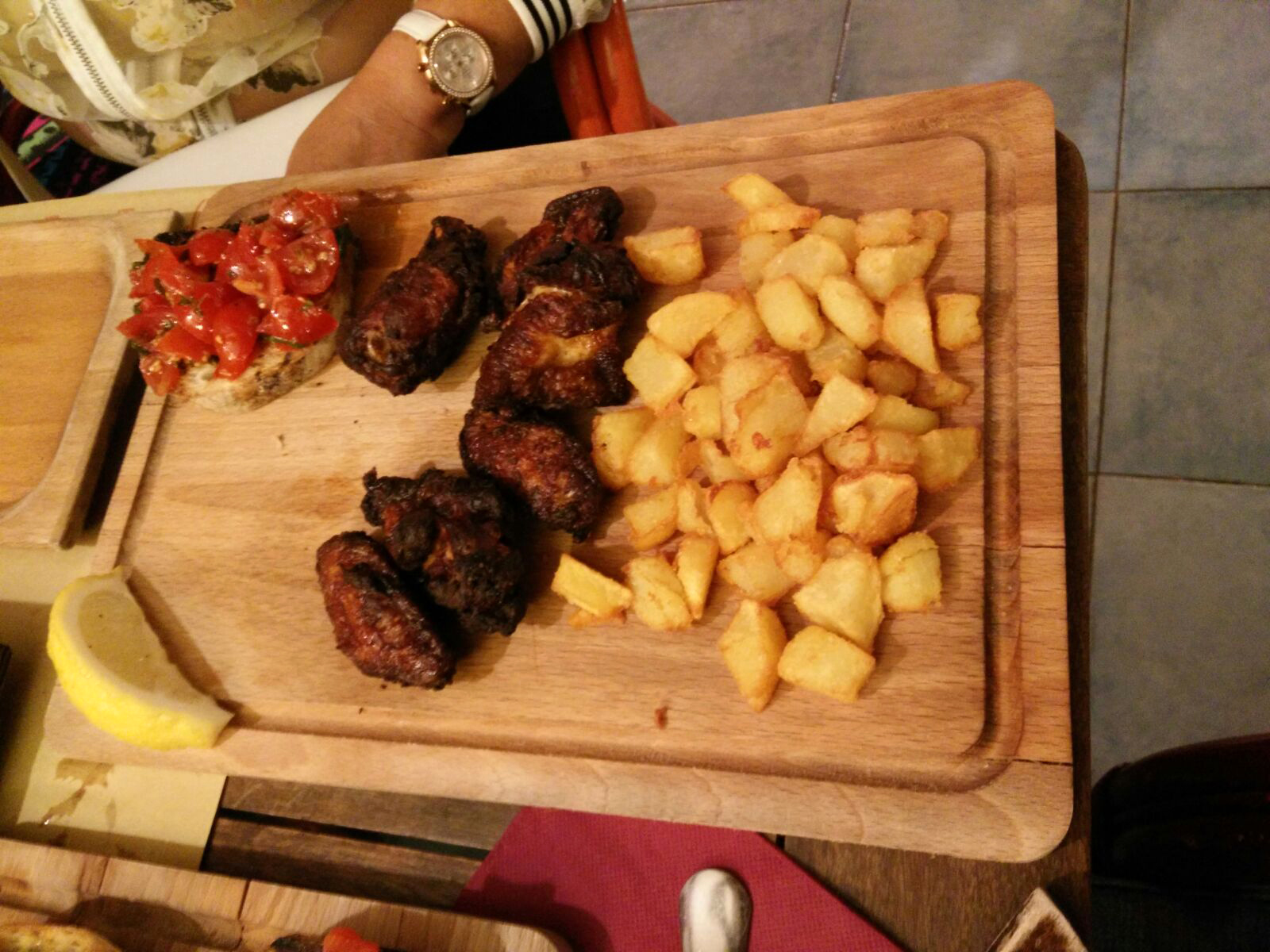 The hunt for the perfect dinner spot began, I found a steakhouse with wonderful reviews, Osteria del Porco. It was still drizzling so we took a cab to the port area with the restaurants. My husband and I were ahead of my parents, my father is a complainer and would not walk extra even for better food, so I knew if I turned around and looked at them he would make us go to a different restaurant. I kept my head down and hurried down the pier area to the place I found. As my parents caught up with us we went into the restaurant. The décor is very simple and it can be somewhat empty, but trust me the food is amazing! I even broke my no-beef-eating rule to enjoy the meats there. My husband, father and I split one of the big samplers that was for two people, my mother had the wings. That sampler was big enough for 4, if not 5 people. The meat was very fresh and melt-in your-mouth amazing. Everything was amazing, including the very diverse side plate that came with the meal. We ordered a bottle of wine, and the owner has great taste in music as well (rock). So we even toasted to the host and the restaurant.