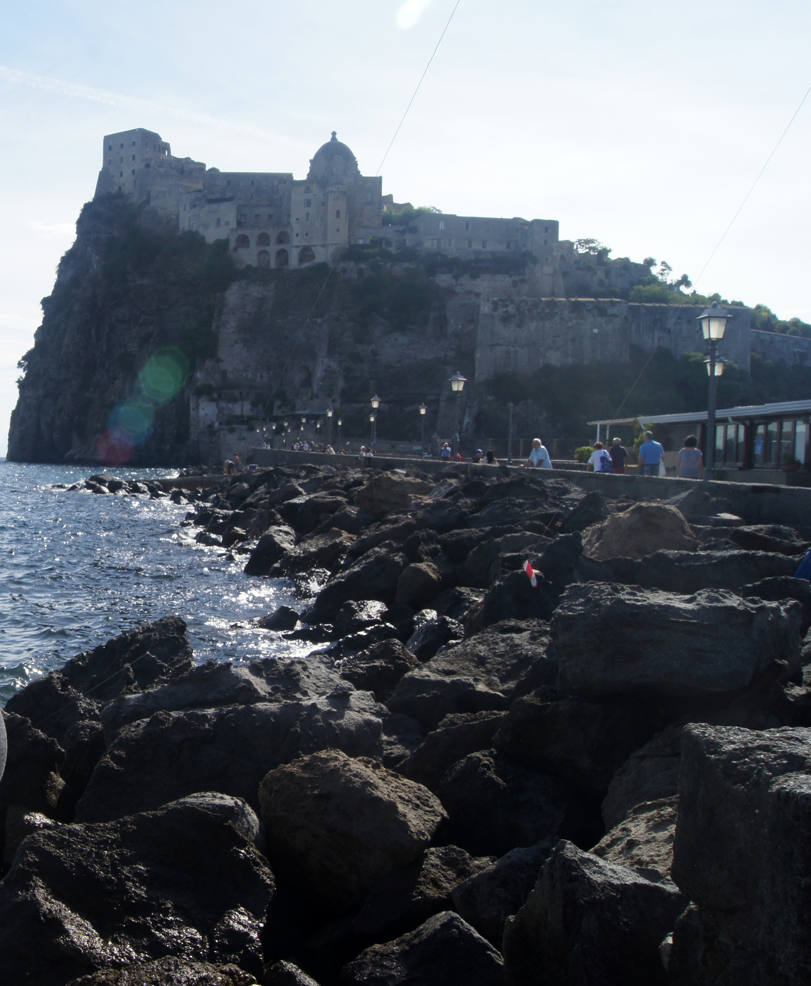 After my husband and I finished breakfast we fast-walked to Castello Aragonese to take some pictures. It was a beautiful day, very warm, sunny and overall perfect weather, the island came alive in the sun! There are many beaches along the way to the castle and many beautiful sites to capture on film. This is the castle that can be seen in the movie “The Talented Mr. Ripley.”